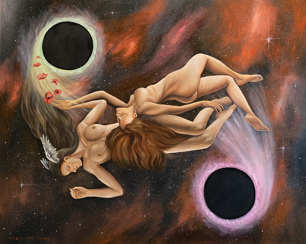 Un connubio tra la Donna e l'Universo che ci porta a riflettere sulla vera essenza della creazione. Tutti noi veniamo dall'ignoto e tutti noi nasciamo dalla Donna. In questa fusione di spirito, la mia arte tende a trasmettere allo spettatore quella piccola conoscenza repressa nell'animo umano che talvolta si tende a dimenticare, l'Amore!