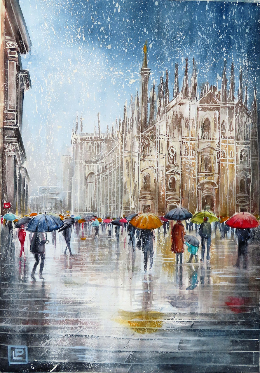 • "neve e colori in Duomo" è un'opera originale, pezzo unico, firmata dall'Artista Lorenza Pasquali.