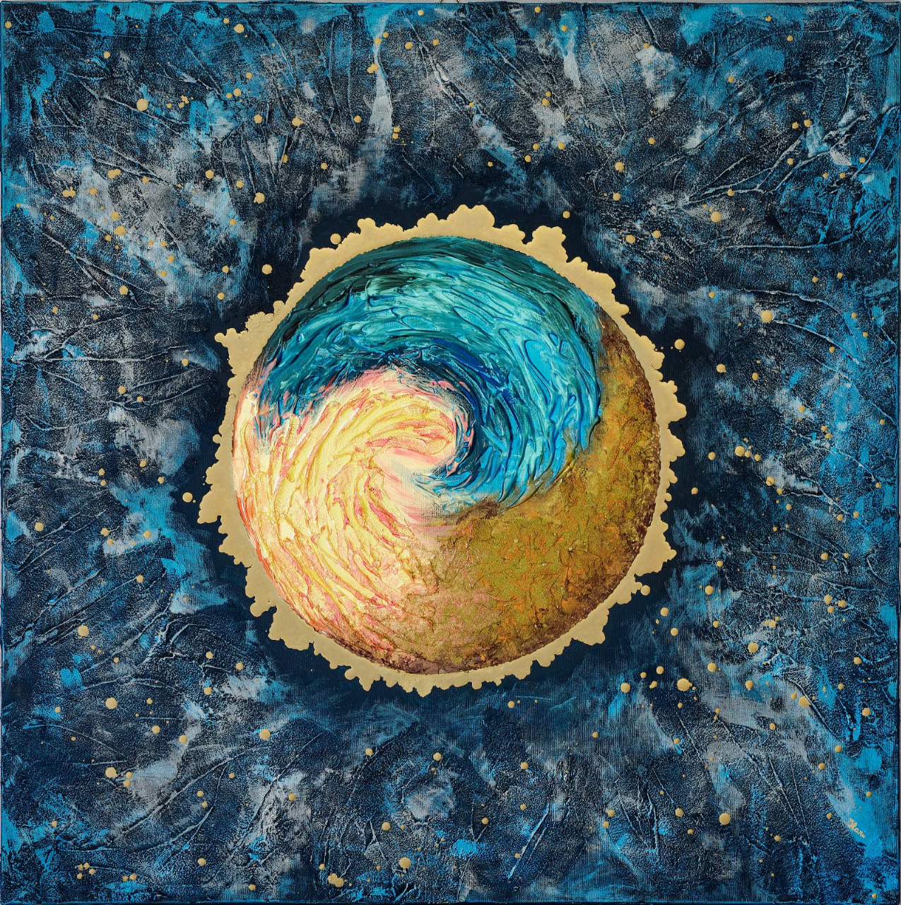 • Quest'opera è stata realizzata nel 2022 con tecnica Acrilico, paste materiche e doratura liquida su te.