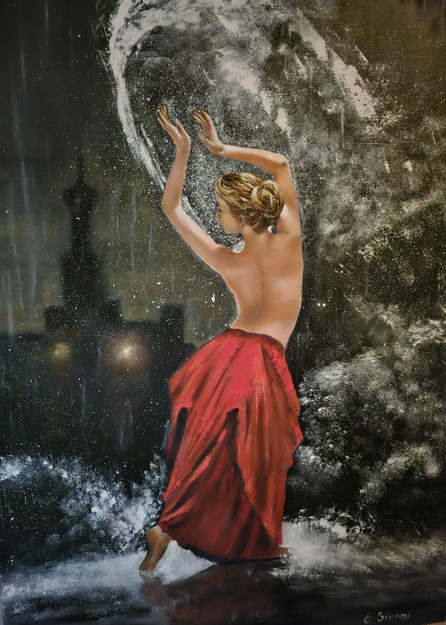 • Quando il rosso danza con la pioggia è un'opera originale, pezzo unico, firmata dall'Artista Elena Sironi.